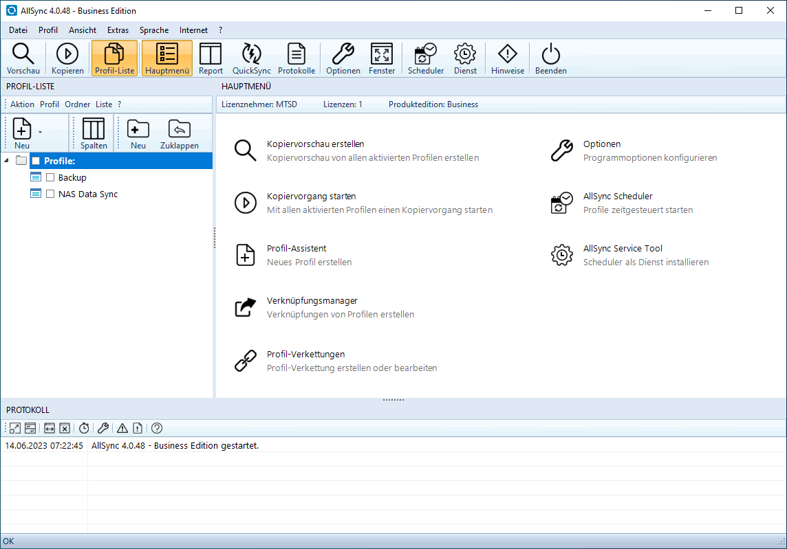 Verschaffen Sie sich einen visuellen Eindruck von AllSync: Auf dieser Seite finden Sie eine Auswahl an Screenshots, die verschiedene Bereiche und Funktionen der Software zeigen. Klicken Sie auf ein Bild, um die entsprechende Ansicht in voller Größe zu öffnen.